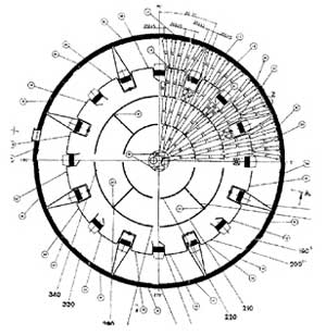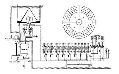 CP库的均化原理是库顶生料通过8条斜槽均匀布料,不同时期的生料在库内呈横向分布,库底充气系统设计更符合生料充气后的流动性,呈放射状斜向分布,环形区一般分8个区,每隔5分钟轮流充气,充气区生料因松动及气流的引导卸入中心区,库内不同层的生料竖向切割下料实现生料的均化,不同时间的生料进入中心区后再进行气体强烈混合均化,从而达到理想的均化效果。