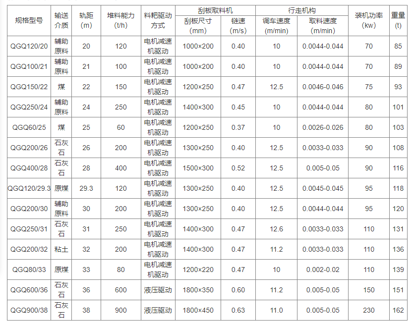 桥式刮板取料机是一种连续、高效的散状物料装卸输送机械,生产能力达110T/H、轨距25M、刮板链宽131M、物料种类及密度石灰石1.5T/M3。桥式刮板取料机可实现煤炭、矿石、化工原料等散状物料的转运、装卸、中和混匀的连续作业,广泛应用于火电厂、建材水泥、矿山、港口码头、钢铁冶金、化工、煤炭与焦化厂等原料储运场。